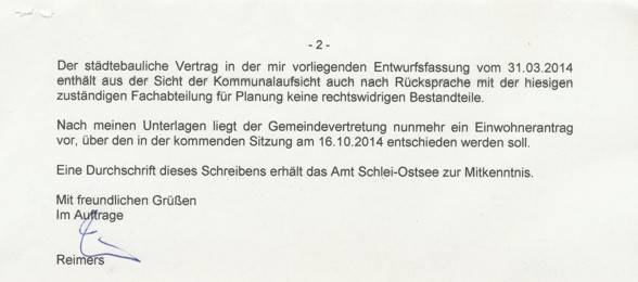 Stellungnahmen der Kommunalaufsicht vom 13.10.2014 zur Prüfung der