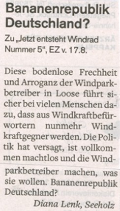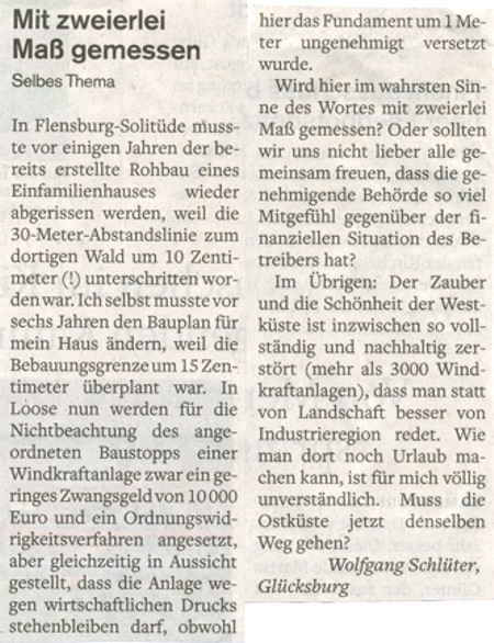 Auszug aus Leserbrief in der Eckernförder Zeitung